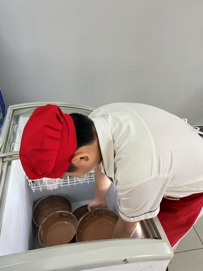 Kemudian setelah semua peserta selesai membuat adonan ice cream, dilanjutkan ke tahap proses penyimpanan adonan ice cream didalam freezer selama 15 sd 20 menit sampai adonan menjadi ngeset sebelum di mixer kembali, untuk mendapatkan tekstur ice cream yang lembut.
