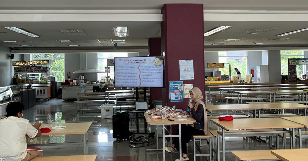 Sambil menunggu adonan ice crean ngeset, semua peserta mendengarkan strory telling terkait sejarah ice cream yang dibawakan oleh ka aura dari TIM Amazy.