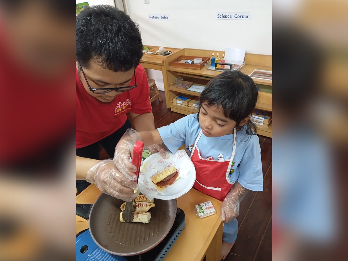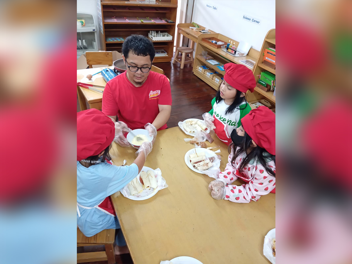 Salah satunya adalah Extra Class – Cooking Class di Green Montessori, di mana anak-anak berpartisipasi dalam serangkaian sesi memasak yang tematik.