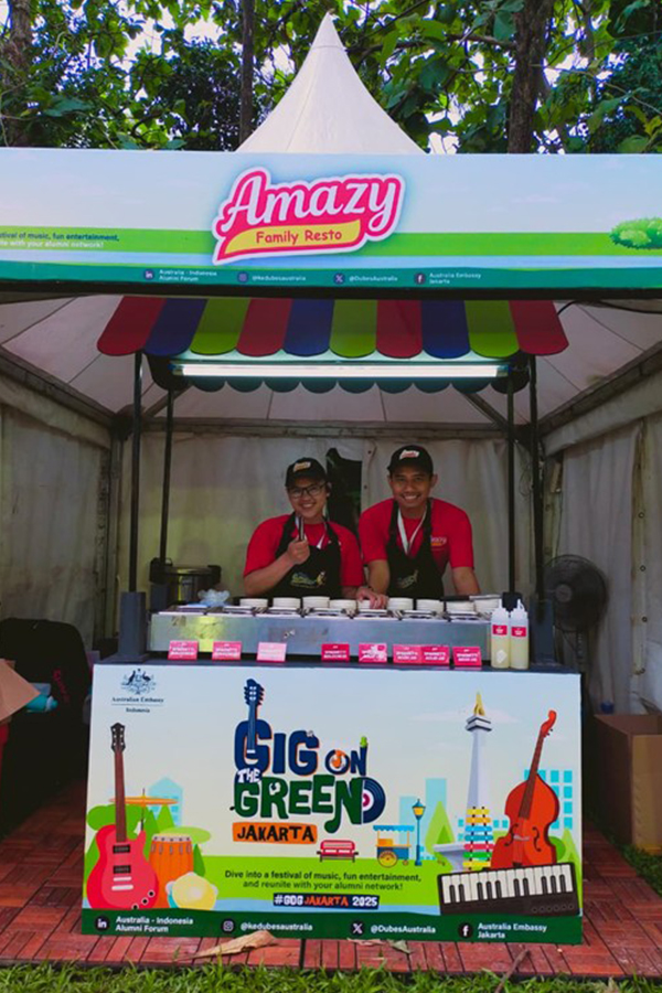25 Agustus 2025 – Suasana sore di halaman Kedutaan Besar Australia, Jakarta, terasa berbeda pada acara “Gig on The Green”, sebuah perayaan musik, kuliner, dan jejaring yang digelar untuk mempererat hubungan antara alumni Australia Awards in Indonesia (AAI) dan mitra-mitra Australia di Tanah Air. Tahun ini, acara yang digagas oleh Australia Embassy Jakarta tersebut kembali dengan tema keberlanjutan dan kreativitas hijau. Dari berbagai stan yang berpartisipasi, satu aroma yang menggoda perhatian para pengunjung datang dari area kuliner — tepatnya dari stan Amazy Family Resto, yang hadir membawakan dua sajian istimewa: Spaghetti Bolognese dan Spaghetti Aglio Olio.