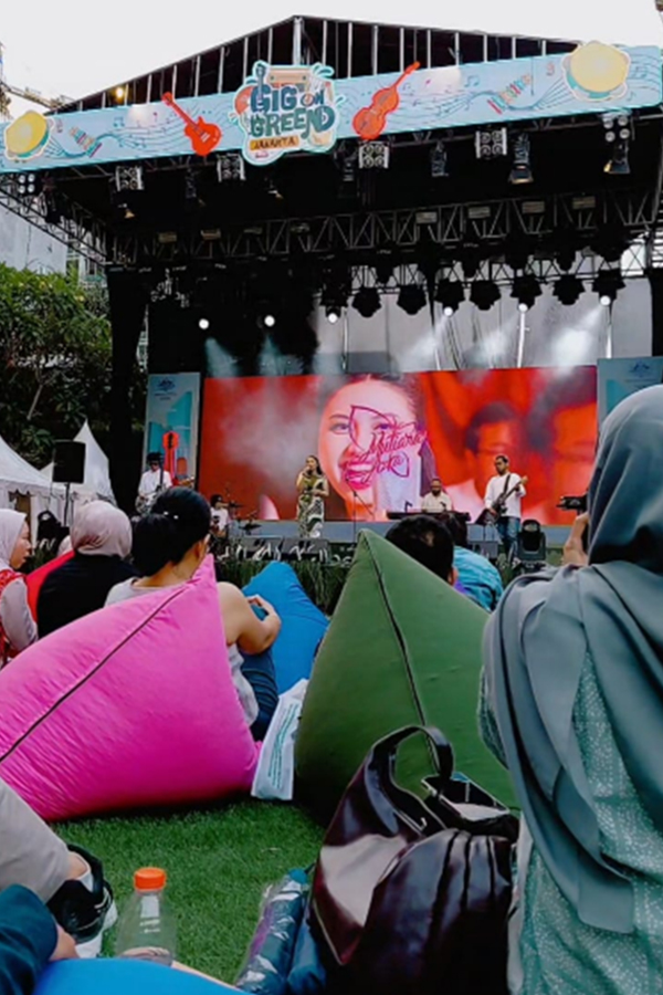 Acara Gig on The Green tahun ini mengambil konsep “Green Celebration” — menggabungkan musik, seni, dan keberlanjutan. Ratusan alumni program pendidikan dan pelatihan dari Australia tampak hadir, bersama mitra bisnis, komunitas muda, hingga wirausahawan yang pernah berjejaring dengan Australia Awards. Beragam stan menampilkan hasil karya dan inovasi alumni dari berbagai bidang: mulai dari pertanian berkelanjutan, edukasi lingkungan, hingga kuliner.