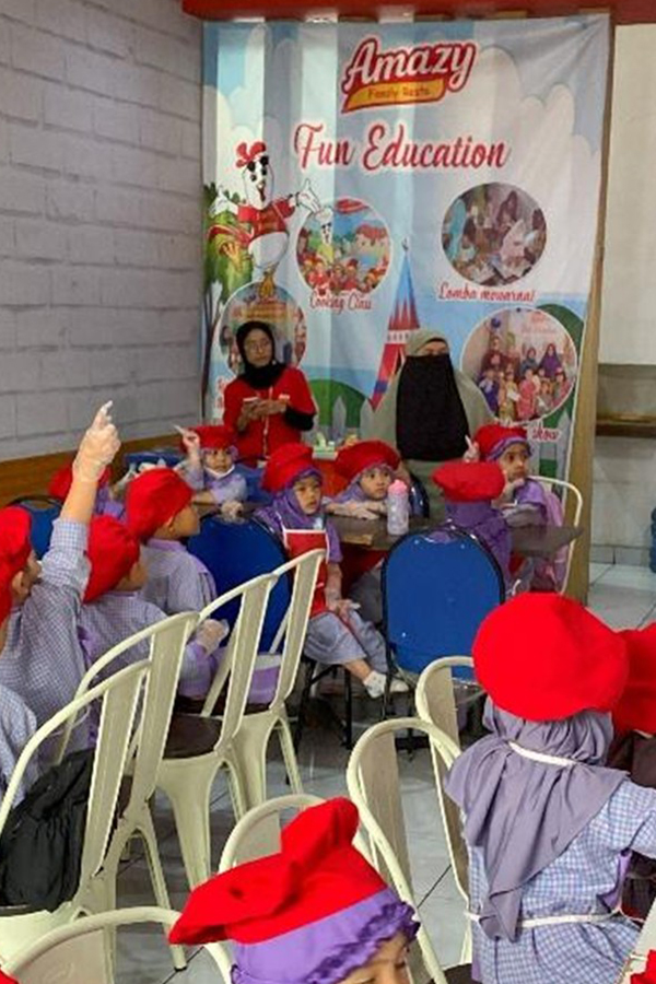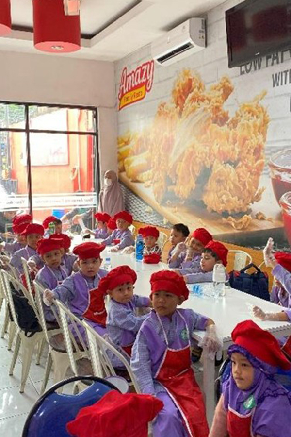 Kamis, 18 September 2025, Amazy family Resto Duren Tiga kembali menyelenggarakan acara Kids Cooking Class bersama sekolah TK Taud Cerdas Aljannah dengan tema Menghias Sushi Bento. Acara ini diikuti oleh 38 peserta siswa/siswi TK rentang usia 5 tahun sampai 6 Tahun. Acara yang berlangsung dari mulai pukul 09.00 WIB hingga 11:00 WIB penuh dengan berbagai kegiatan menarik yang membuat anak-anak sangat antusias dalam mengikuti serangkaian kegiatan cooking class bersama Amazy.