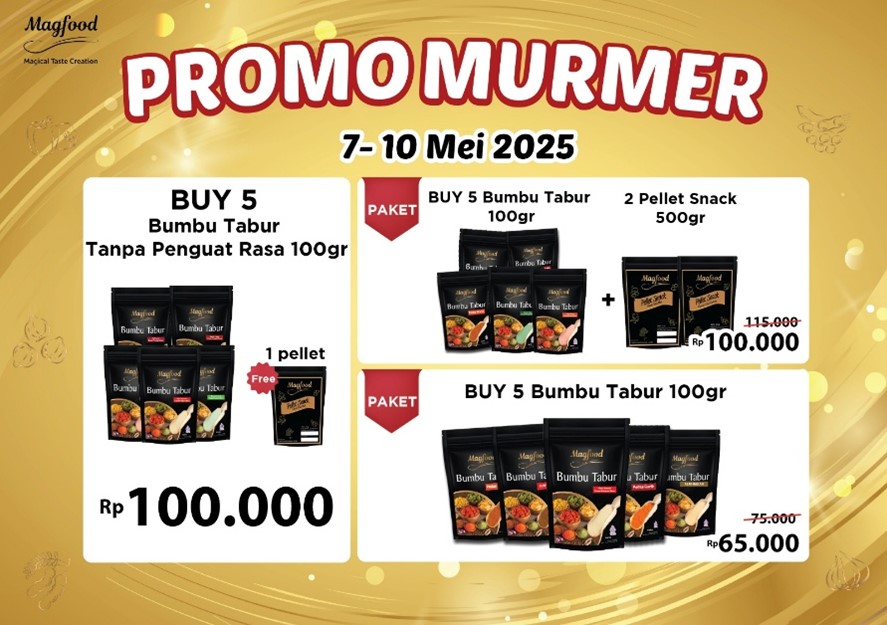 - Buy 5 Bumbu Tabur 100gr hanya Rp65.000 (harga normal Rp75.000).