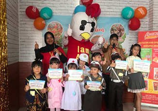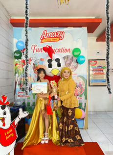 Sejak pagi hari, suasana sudah terasa meriah dan penuh warna. Tidak hanya menyajikan lomba fashion show, anak-anak dan para orang tua juga disuguhi berbagai kegiatan seru lainnya seperti games berhadiah, photobooth bersama badut Amy, serta promo spesial menu-menu favorit dari Amazy.