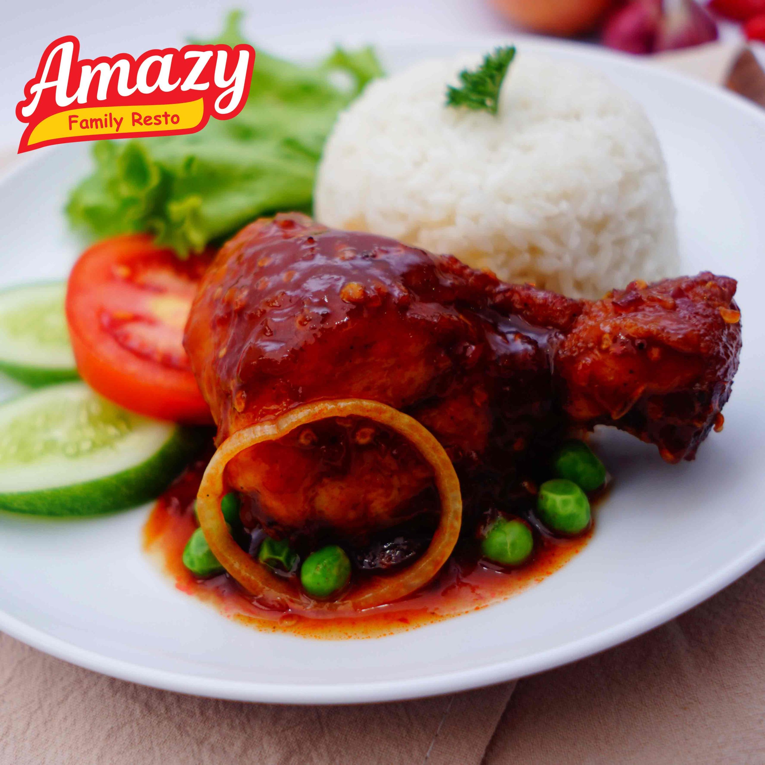 Red Chili Chicken merupakan menu unggulan Amazy yang menjadi favorit bagi pecinta makanan pedas. Ayam goreng yang empuk dan gurih disiram saos Red chili khas Amazy. Sensasi pedas manisnya membuat makanan ini sangat lezat untuk dinikmati.