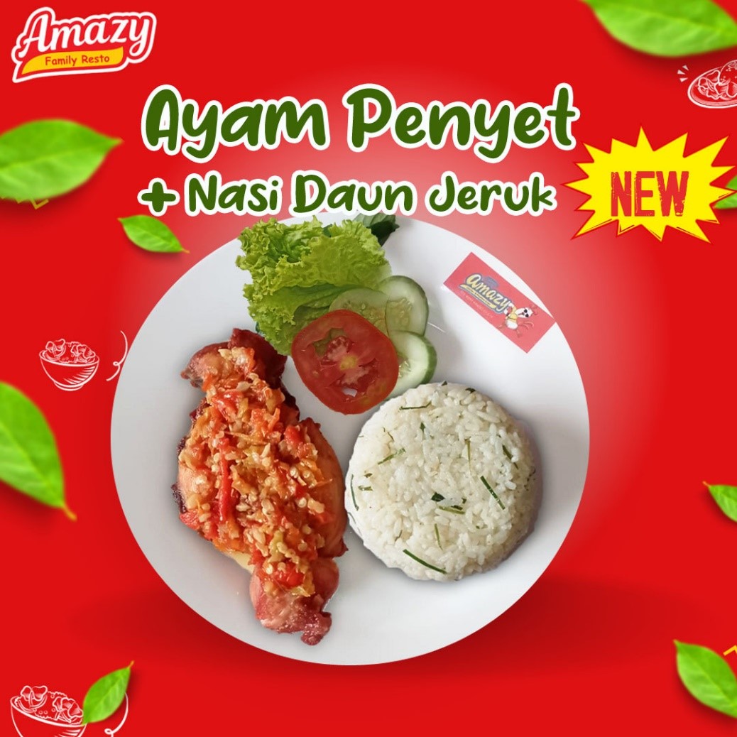 Selain ayam geprek, Amazy juga menyediakan salah satu menu ayam goreng khas Indonesia dengan sambal pedas yaitu ayam penyet. Ayam penyet Amazy disajikan dengan nasi daun jeruk yang super harum sehingga menambah kelezatan. Ayam yang gurih dan juicy dengan bumbu meresap, dipadu sambal super pedas dan nasi daun jeruk yang harum, jadi kombinasi menu yang sempurna untuk Kamu nikmati!